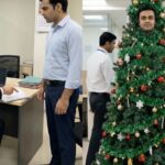 Unable to Find a Christmas Tree, Man Becomes One, Stands for 8 Hours to Impress His Boss